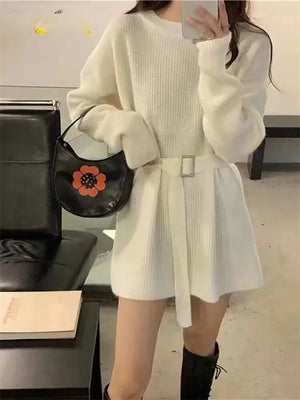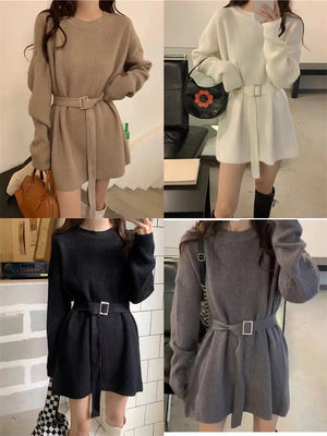 Autumn Women's Knitted Dress with Belt and Long Sleeves