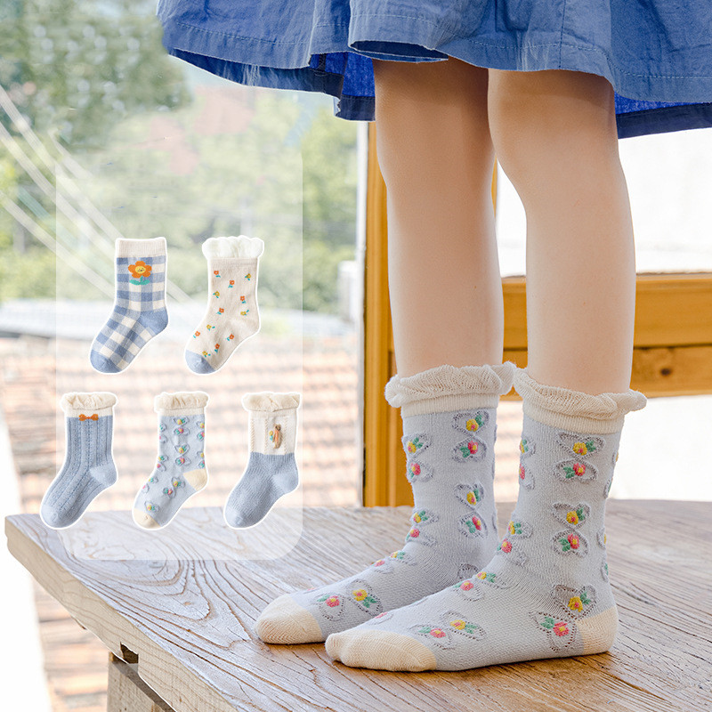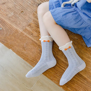 Crafted from high-quality cotton, these socks are soft, breathable, and perfect for the spring, autumn, and even winter days. The middle calf length ensures they stay comfortably in place, allowing your little princess to run and play freely.