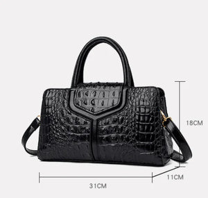 Elevate your style with this luxurious crocodile-embossed leather messenger bag. Crafted from premium quality leather, this bag exudes sophistication and durability. Its spacious interior and multiple compartments provide ample storage for your essentials, while the adjustable shoulder strap offers versatility for any occasion. A timeless piece that will complement any outfit.