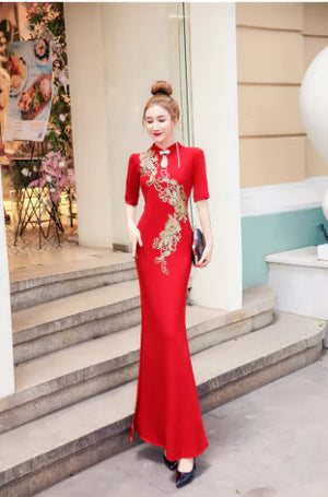 Step into elegance with our stunning Cheongsam-inspired dress, designed to enhance your natural beauty and exude sophistication. Crafted from premium TR fabric, this exquisite gown effortlessly combines comfort and style, ensuring you feel as good as you look.