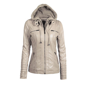 Chic Solid Color Women's Leather Jacket