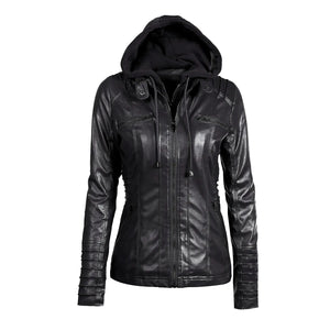 Don't miss out on this chic winter essential. Embrace the cold with confidence and style in the Removable Lapel Long Sleeve Solid Color Zip Winter Women's Leather Jacket!