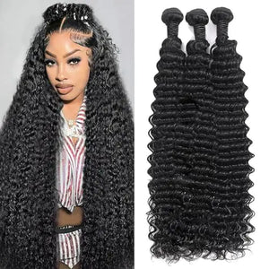 Explore Supreme Quality: Our 12A grade Deep Wave Human Hair Bundles are crafted from unprocessed Brazilian human hair. Each bundle originates from a single donor, ensuring pristine cleanliness, health, and natural authenticity. Perfect for dyeing, bleaching, and styling to your preferences without compromising the hair's integrity.
