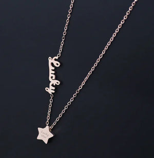 Crafted from high-quality alloy and featuring a luxurious titanium steel pendant, this necklace boasts durability and a stunning finish, thanks to its meticulous electroplating treatment. Available in a variety of charming shapes, including letters, numbers, and text, you can personalize your necklace to reflect your individual style.