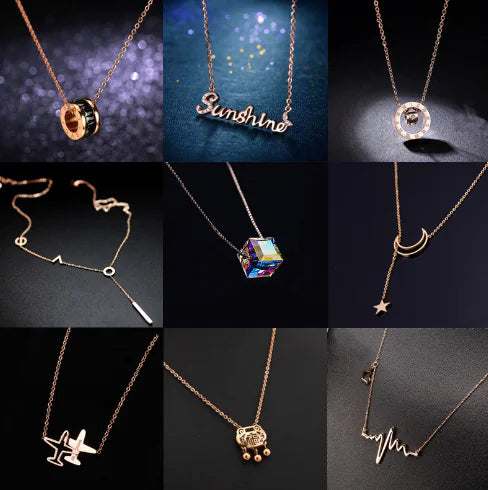 T018 Ice Flower Necklace, T002 Letter love, T003 Heart Rate of Love, T013 Butterfly Necklace, T007 Crystal Slender Waist, T020 Little Fox, T004 Single Drill Long Rod, T010 Longevity Lock, T029 Love, T012V-shaped necklace, T123 Stars and Moon |