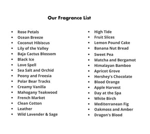 If you donβt see a color / scent you like in the drop down menu, please see pictures for our color palette and fragrance list.
