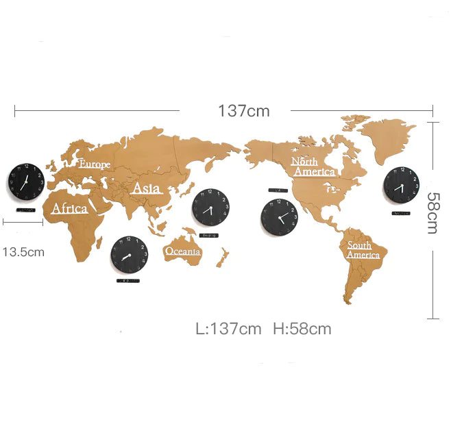 Transform your space with our stunning European-style wooden creative wall clock, featuring a breathtaking 3D world map design. This clock is not just a timepiece, but a striking piece of art that adds a touch of sophistication to any environment.
