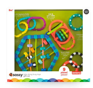 Sassy Busy Bands Take Along Teethe & Toys: Ideal for on-the-go entertainment, this baby toy activity set enhances sensory and motor skills development.