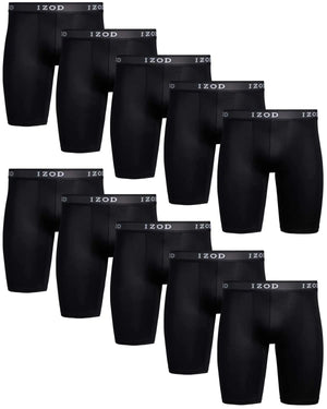 IZOD Men's 10-Pack Performance Boxer Briefs - Long Leg Moisture Wicking Stretch Underwear (S-XL) Black