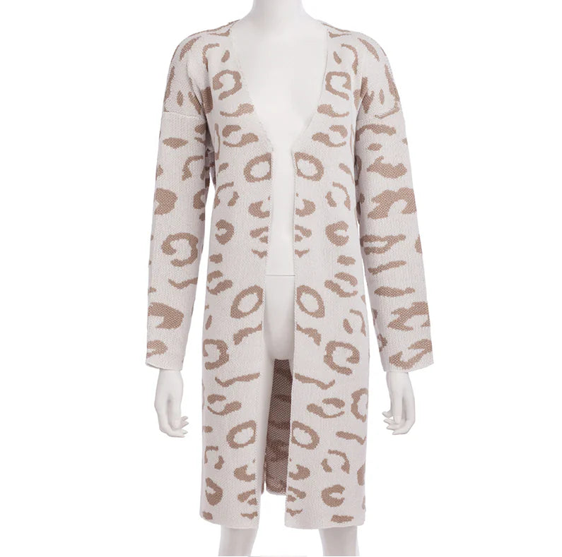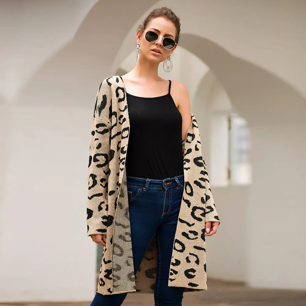 Embrace your wild side with our stunning leopard print cardigan, designed to elevate your style while providing ultimate comfort. Made from a luxurious blend of acrylic and polyester, this long, loose-fitting knitwear is perfect for layering during the cooler months or adding a chic touch to your everyday look.