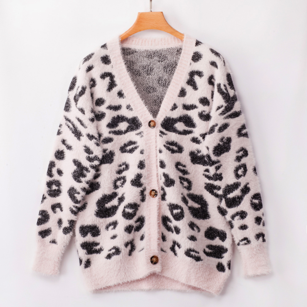 Embrace the allure of autumn and winter fashion with our stunning long-sleeve leopard print cardigan, available in three chic colors: White, Khaki, and Pink. This versatile sweater is designed for the modern woman who values both comfort and style.