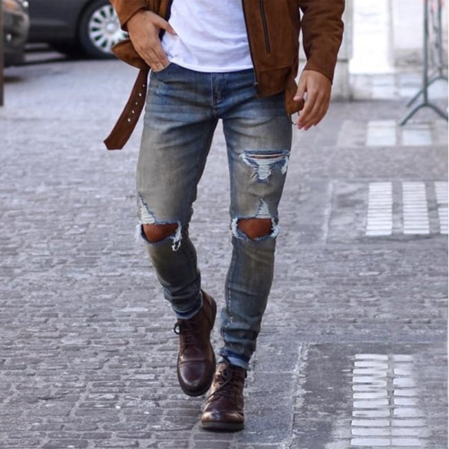 Elevate your wardrobe with our latest Men's Cross-border Jeans, designed for those who appreciate a blend of style and comfort. Crafted with a British-style aesthetic, these pencil pants are tailored to fit snugly, providing a modern silhouette that enhances your look.