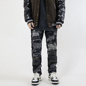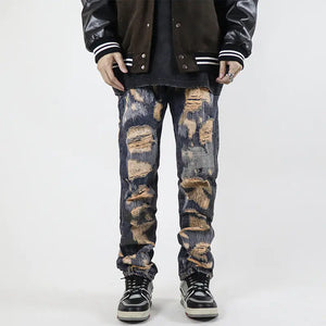Step up your style game with our High Street Retro Washed Straight Hole Blasted Street Personalized Jeans for men. Crafted from premium quality cotton with a content of over 95%, these jeans promise both comfort and durability, making them a perfect choice for the modern man.
