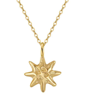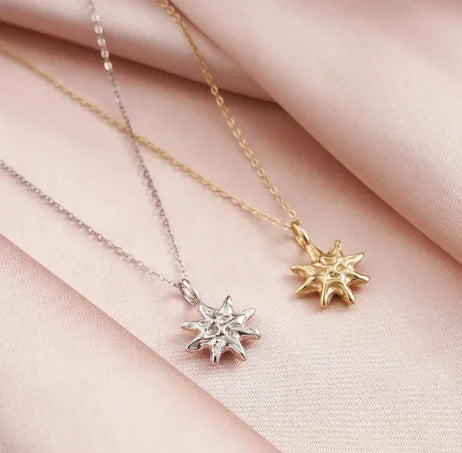 This Sterling Silver Hammered Star Pendant Necklace adds a touch of elegance and charm to any look. The delicate, hammered texture catches the light beautifully, highlighting the star's unique shape. Perfect for everyday wear or special occasions, this necklace is versatile and stylish, made from quality sterling silver for lasting shine.