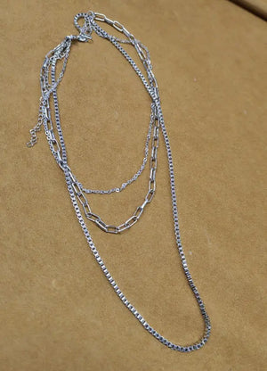 Elevate your style with this elegant three-layer necklace, crafted from stainless steel with a high-quality electroplated finish. Geometric design and modern lines make it perfect for everyday wear or special occasions. Includes 1 necklace.